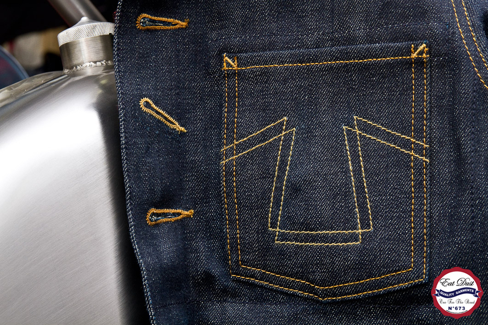 Saw, I believe it was Jeremiah from Love Cycles wearing this cool denim jacket in a blog post and thought it was pretty cool. "Z" bars stitched into the pockets, Awesome. Just came across them the other day while i was trying to find something for the missus to get me for Christmas. I found them HERE and they are made by Eat Dust Clothing. I never did get one but my birthday is in a few months so here's hoping.
